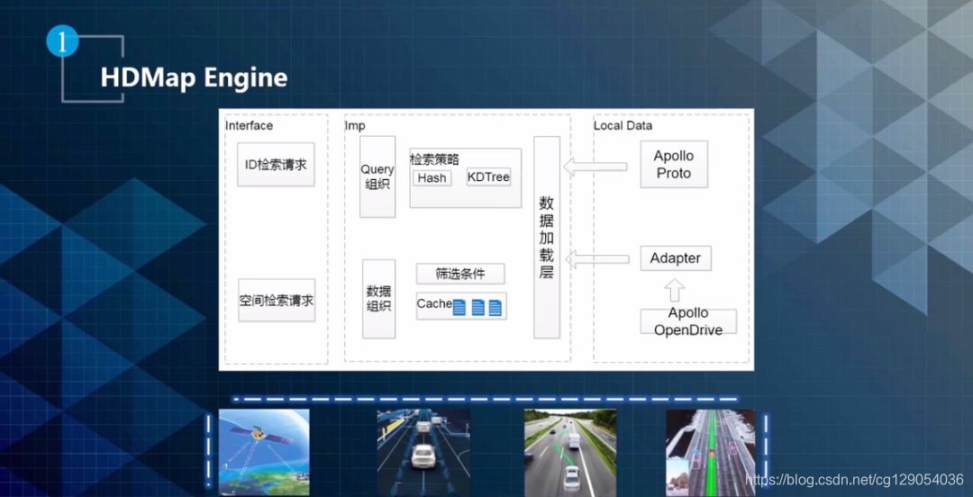 HDMAP引擎是Apollo里面用于从HDMAP里面提取相关元素给下游的一个模块。它的结构框图如上图所示。