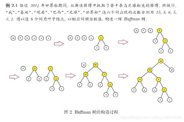 这里简单介绍霍夫曼树的构造:给定n个权值作为二叉树的n个叶子结点,可通过如下算法来构造。