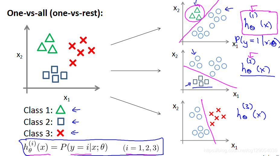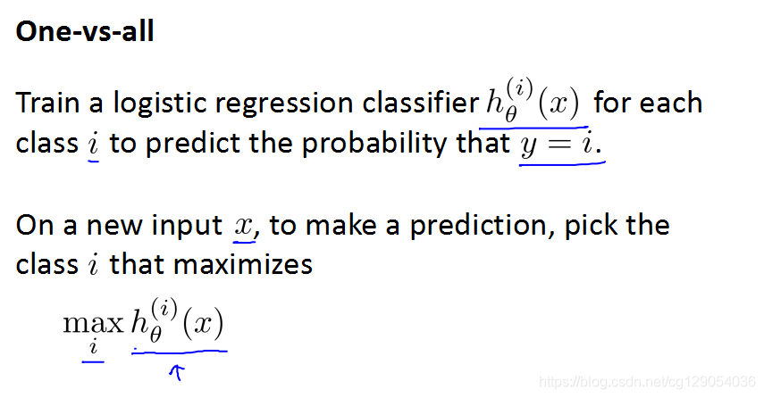 多分类问题,我们可以训练多个分类器,预测每一个分类器的输出值,以最大输出值对应的分类为它的预测值。