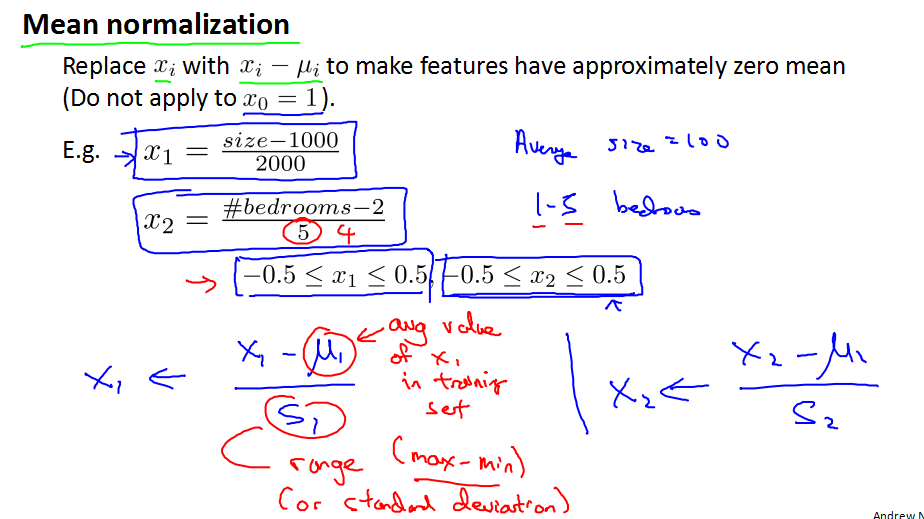 最简单的办法就是均值化,特征减去它的均值再除以标准差:
