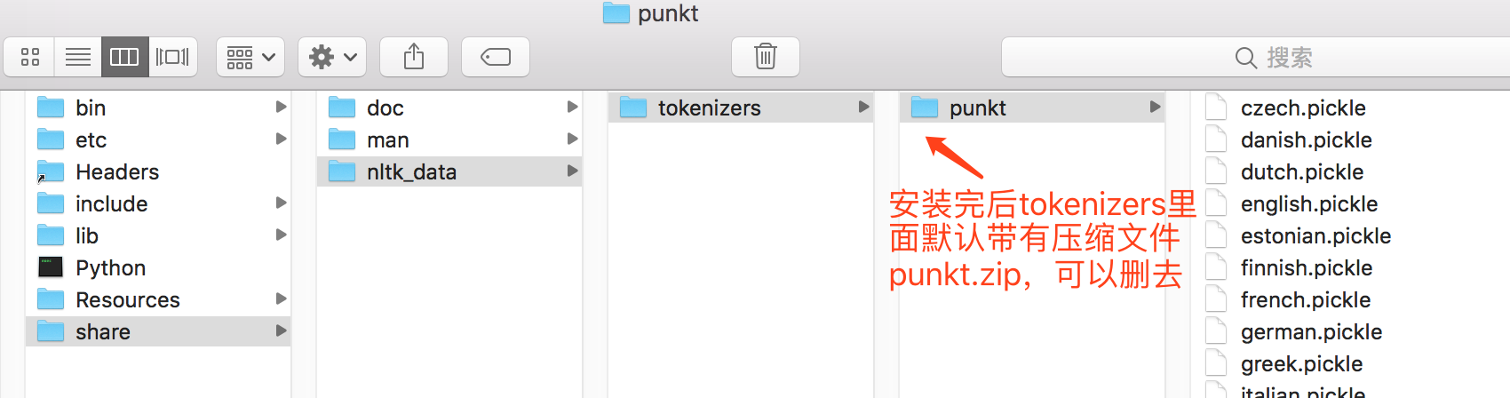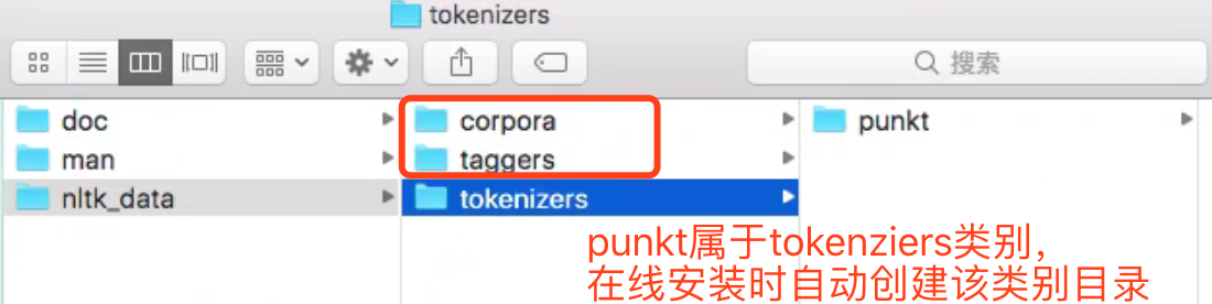 2.2 新建一个nltk_data文件夹(仅第一次安装时)放到任意路径下(如:我放在Python.framework/Versions/3.7/share/中);