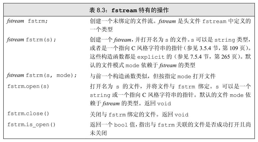 除了继承自 iostream类型 的行为外,fstream类型 还增加了一些新的成员来管理与流关联的文件。