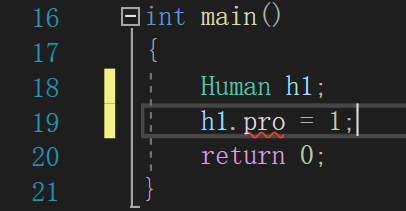 public:int pub;friend int f(Human h) { return h.pro; }