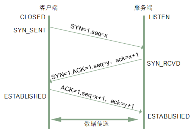 这样 服务端 就能得出结论:客户端的接收、发送能力正常,服务器自己的发送、接收能力也正常。