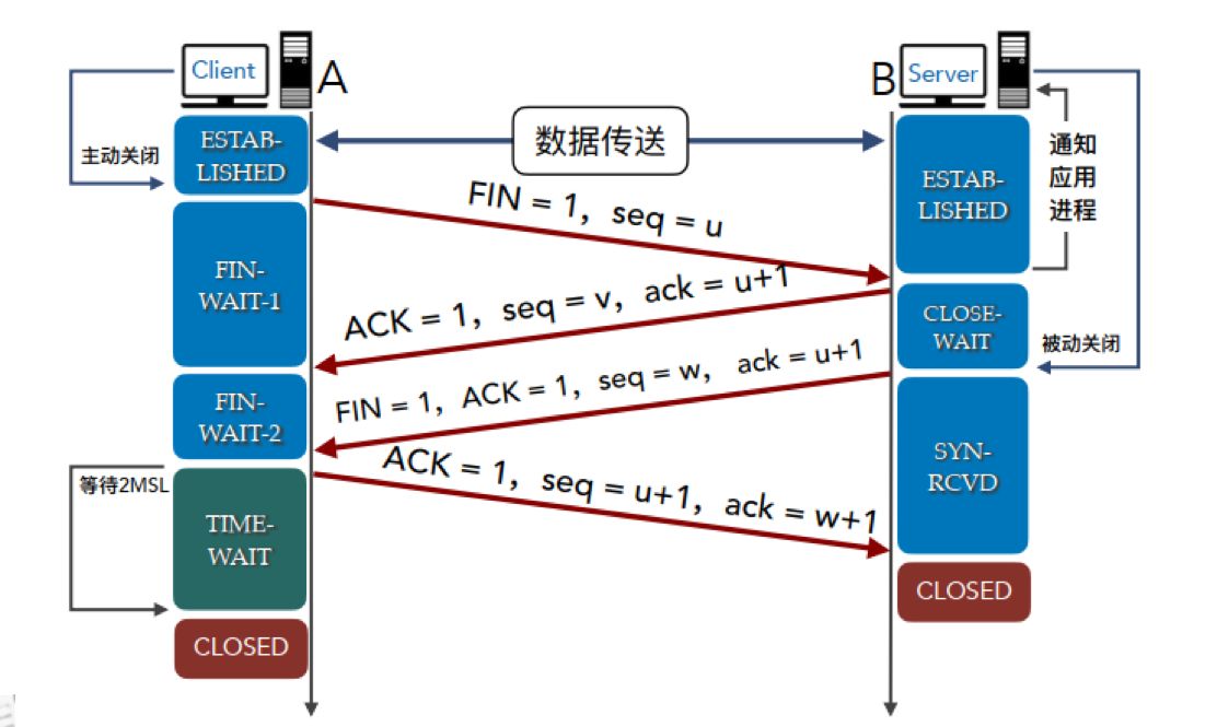 - 第二次挥手: 服务端:你要说的我都听到了,但是我的话还没说完。