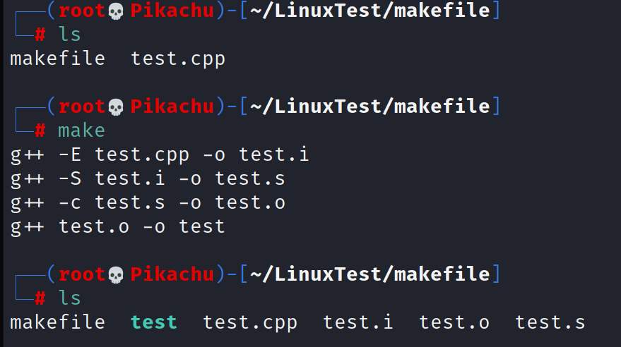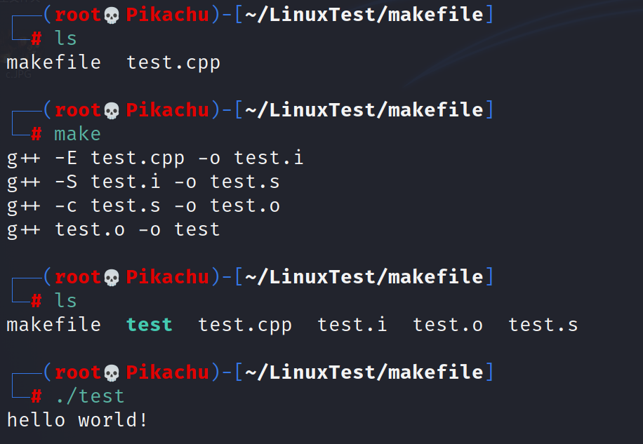 这样就生成了 .i, 、.s 、.o 、.out 文件。那么 make 是怎么运行的呢?
