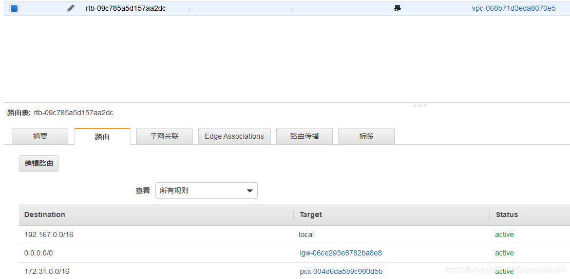 这里需要在路由里添加对方VPC的路由信息,172.31.0.0/16 以及对应的vpc对等连接id,注意这里需要两两之间互相配置对方的路由方可生效,最后ping下对方的私有ip是可以ping通的,如果有其他问题,可以在下方留言