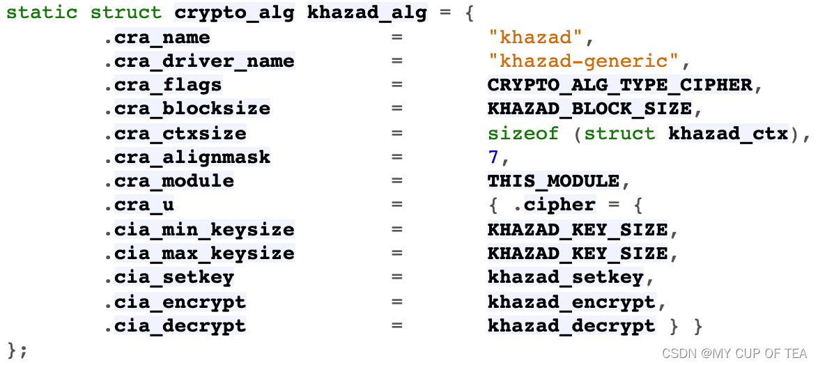 - 加密框架支持Khazad算法,记为khazad,其实现源码为khazad.c。
