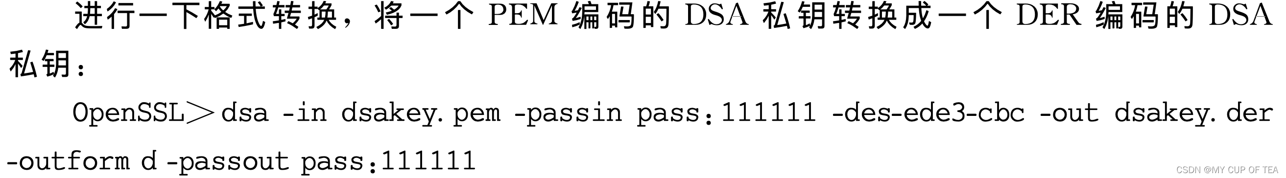 - 输出密钥的编码格式OpenSSL没有提供可以选择的余地,只能是PEM编码。