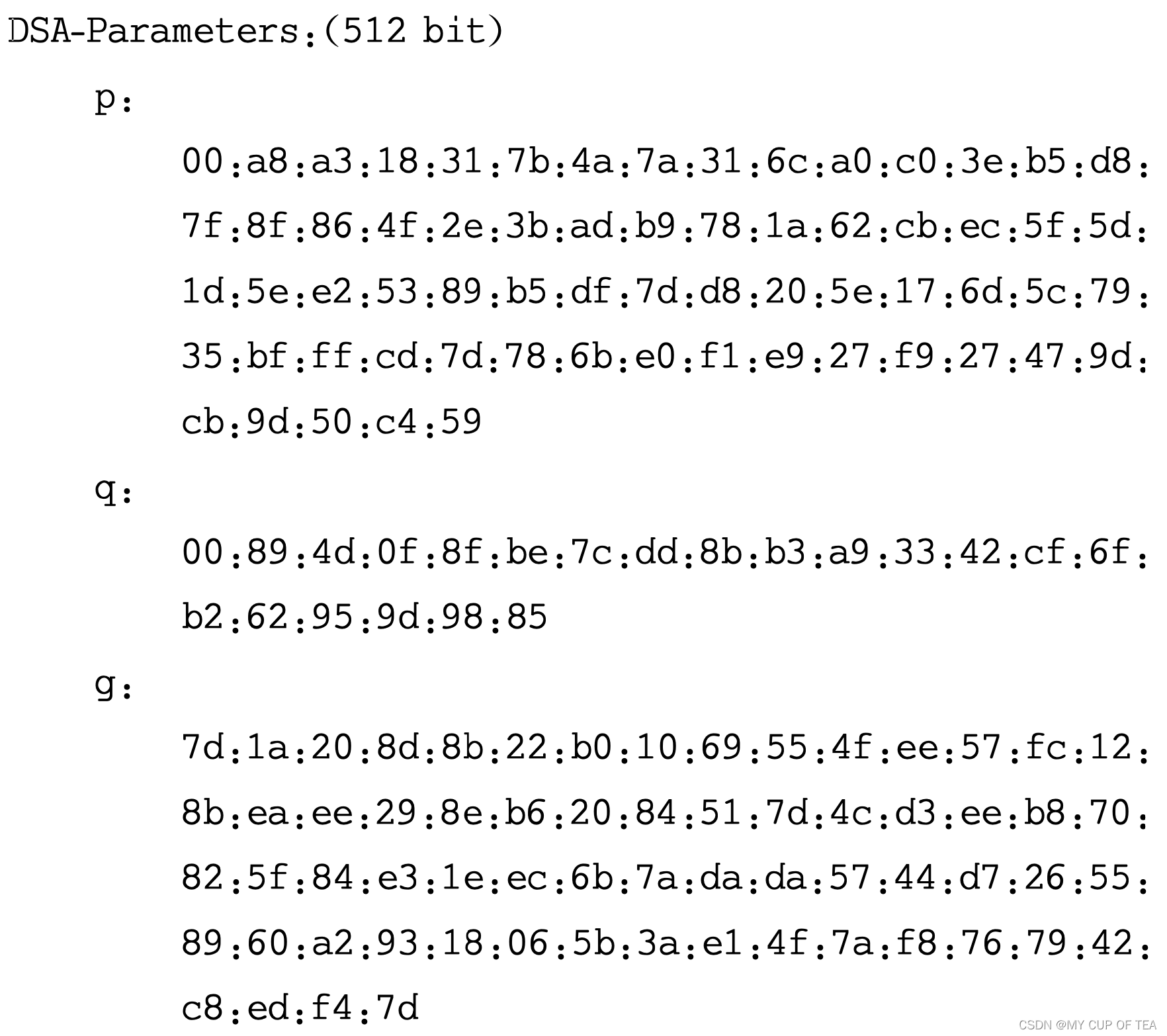 -  使用了text选项的 DSA 密钥参数输出结果