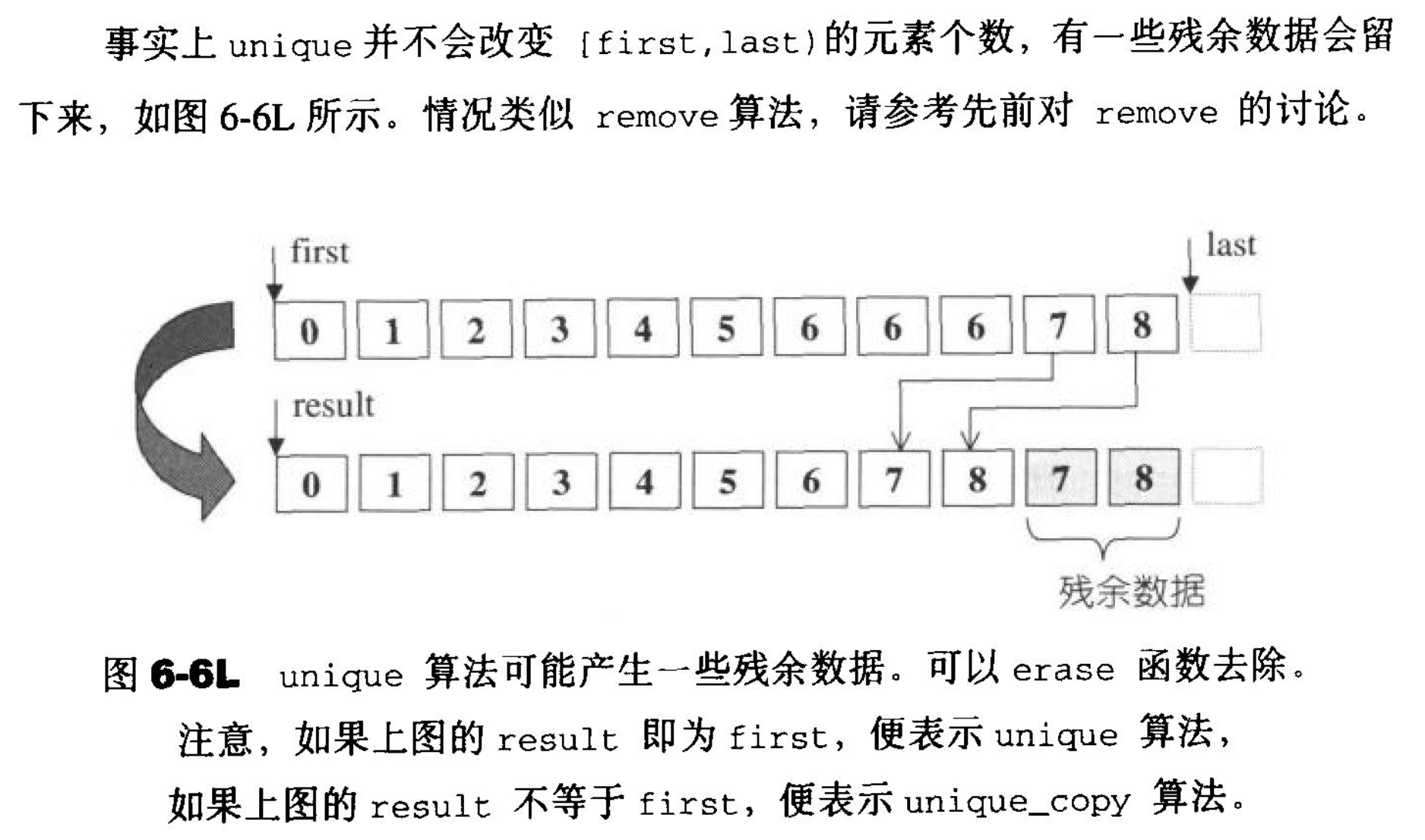 - 返回的迭代器指向新的区间的尾端,新区间内容不重复