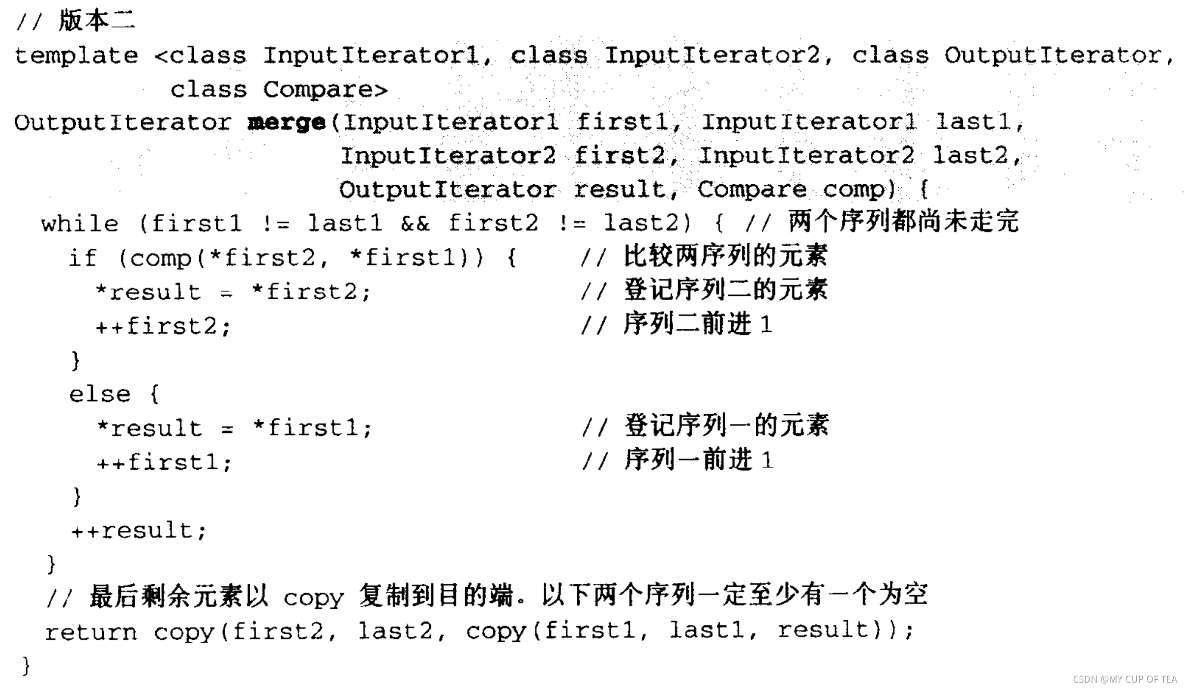 - 算法第一个版本使用元素型别提供的equality操作符号,第二版本使用用户指定的pred二元运算符号