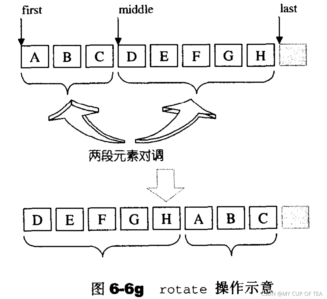 template <class ForwardIterator>void rotate (ForwardIterator first, ForwardIterator middle,ForwardIterator last)