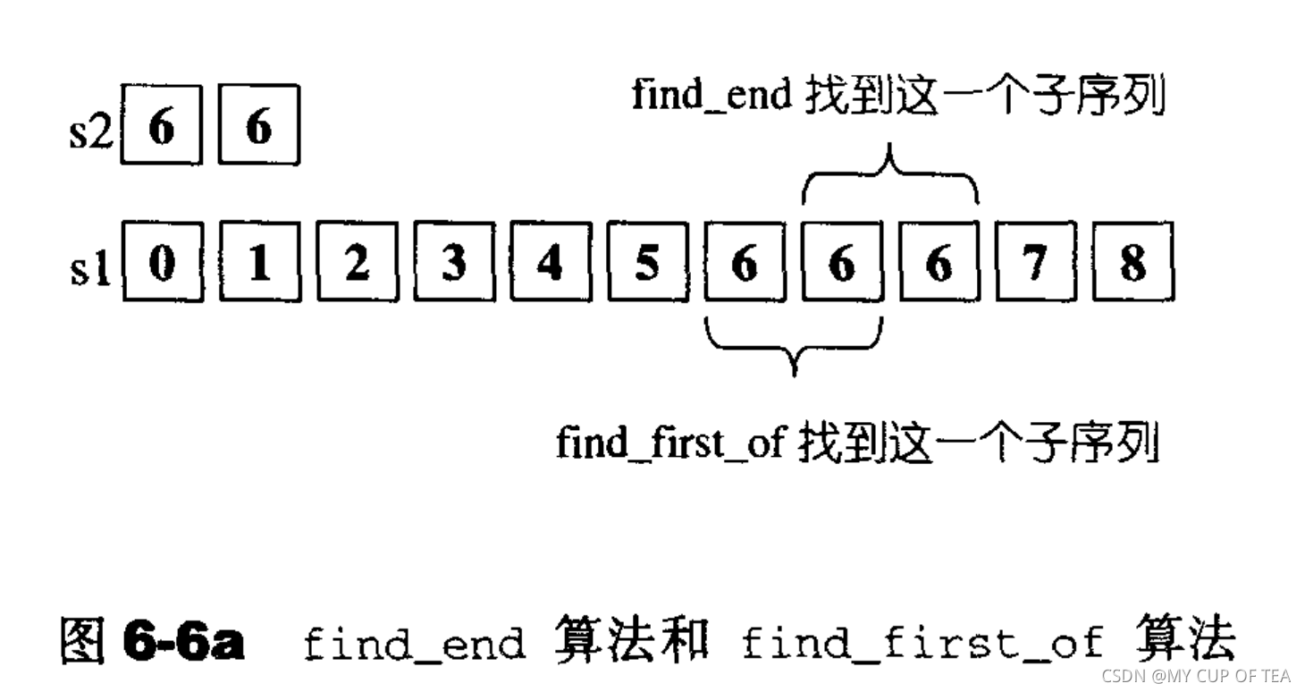 - 查找连续几个符合条件的元素组成的子序列,返回一个迭代器指向该子序列起始的地方,找不到返回迭代器last
