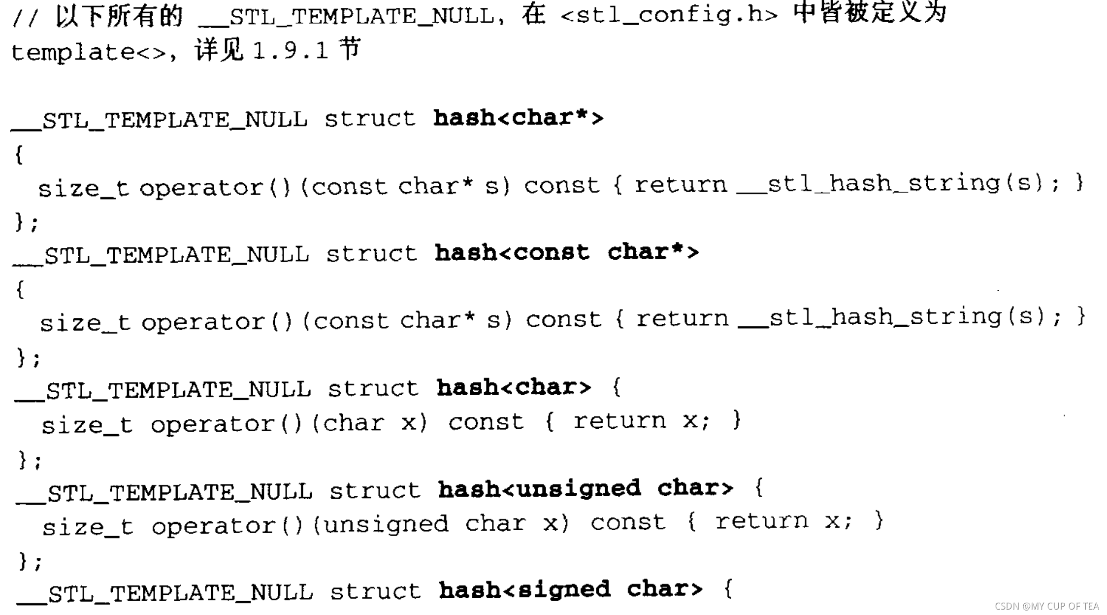 }//下面所有的 __STL_TEMPLATE_NULL 在<stl_config.h>里面全部被定义为template<>int main(){const char *input_string("Hello");std::cout << input_string << std::endl;std::cout << __stl_hash_string(input_string) << std::endl;