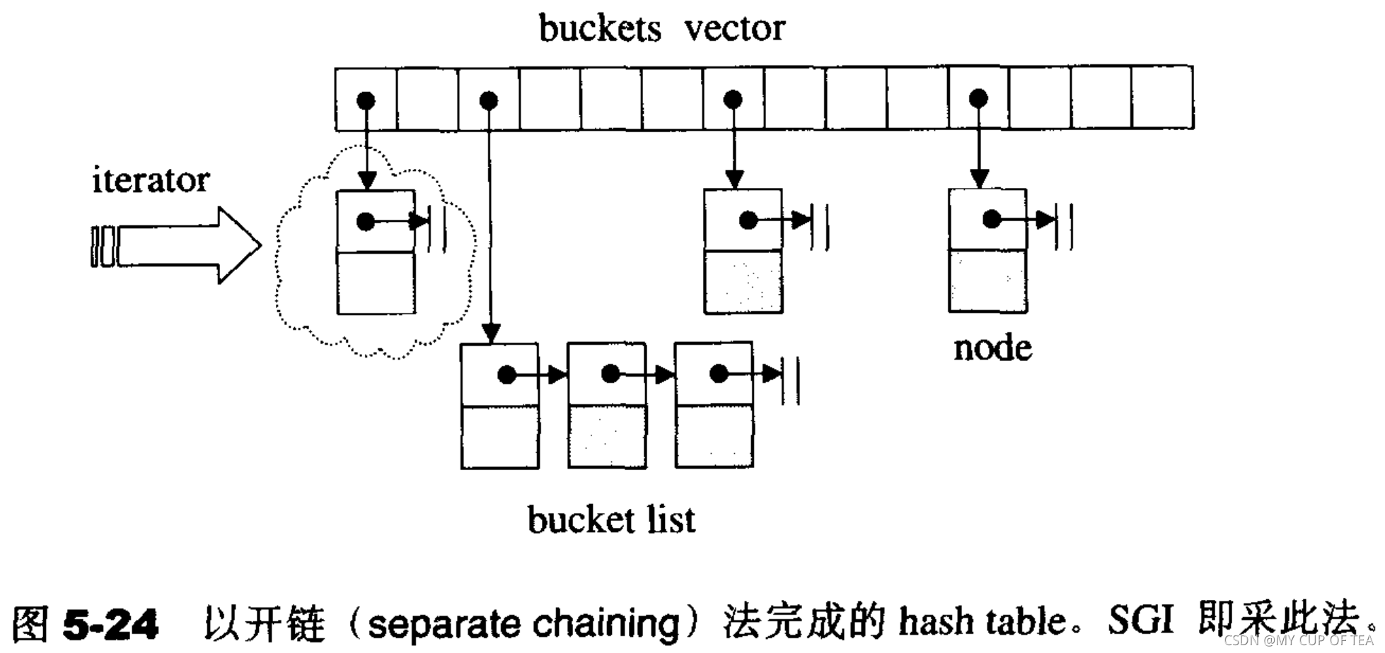 - buckets聚合体则以vector完成,从而具备了扩充的能力