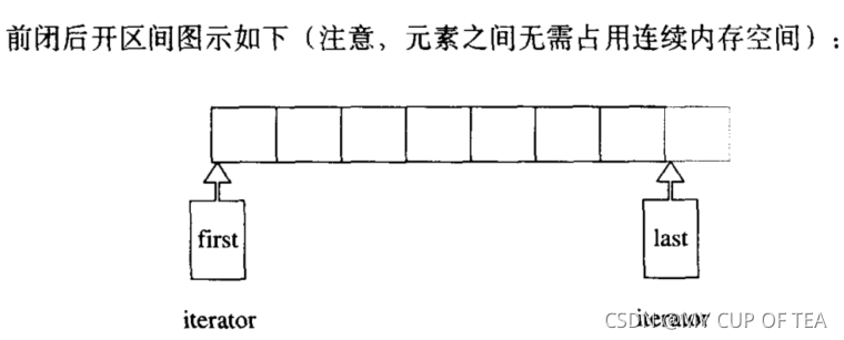 - STL算法需要使用一对迭代器(泛型指针)表示 区间,也就是操作的的范围,使用[first.,last)来表示;实际的范围是first 开始 到 last-1结束