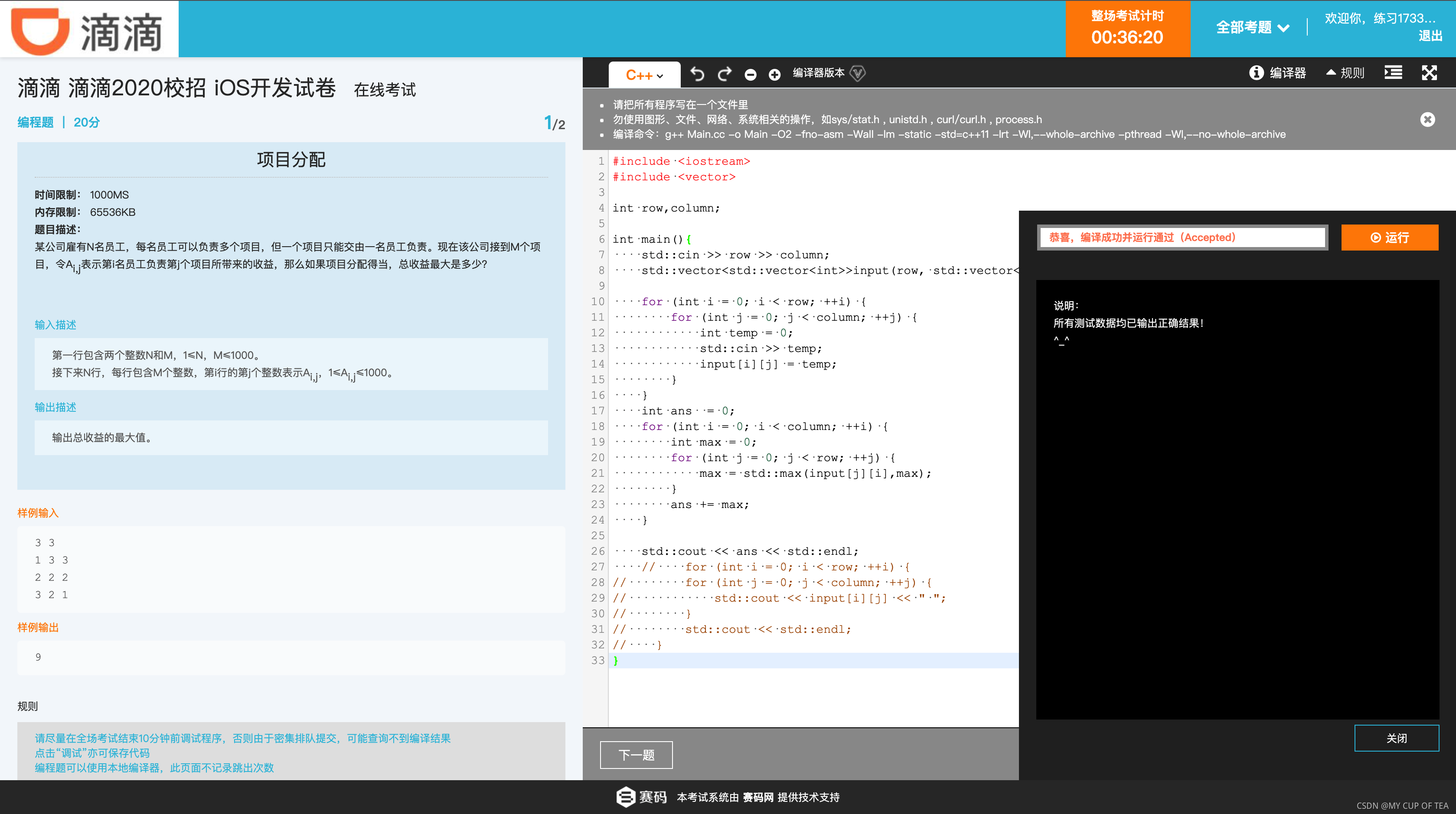 #include <vector>int row,column;int main(){std::cin >> row >> column;std::vector<std::vector<int>>input(row, std::vector<int>(column, 0));for (int i = 0; i < row; ++i) {for (int j = 0; j < column; ++j) {int temp = 0;std::cin >> temp;input[i][j] = temp;}}int ans = 0;for (int i = 0; i < column; ++i) {int max = 0;for (int j = 0; j < row; ++j) {max = std::max(input[j][i],max);}ans += max;}std::cout << ans << std::endl;// for (int i = 0; i < row; ++i) {