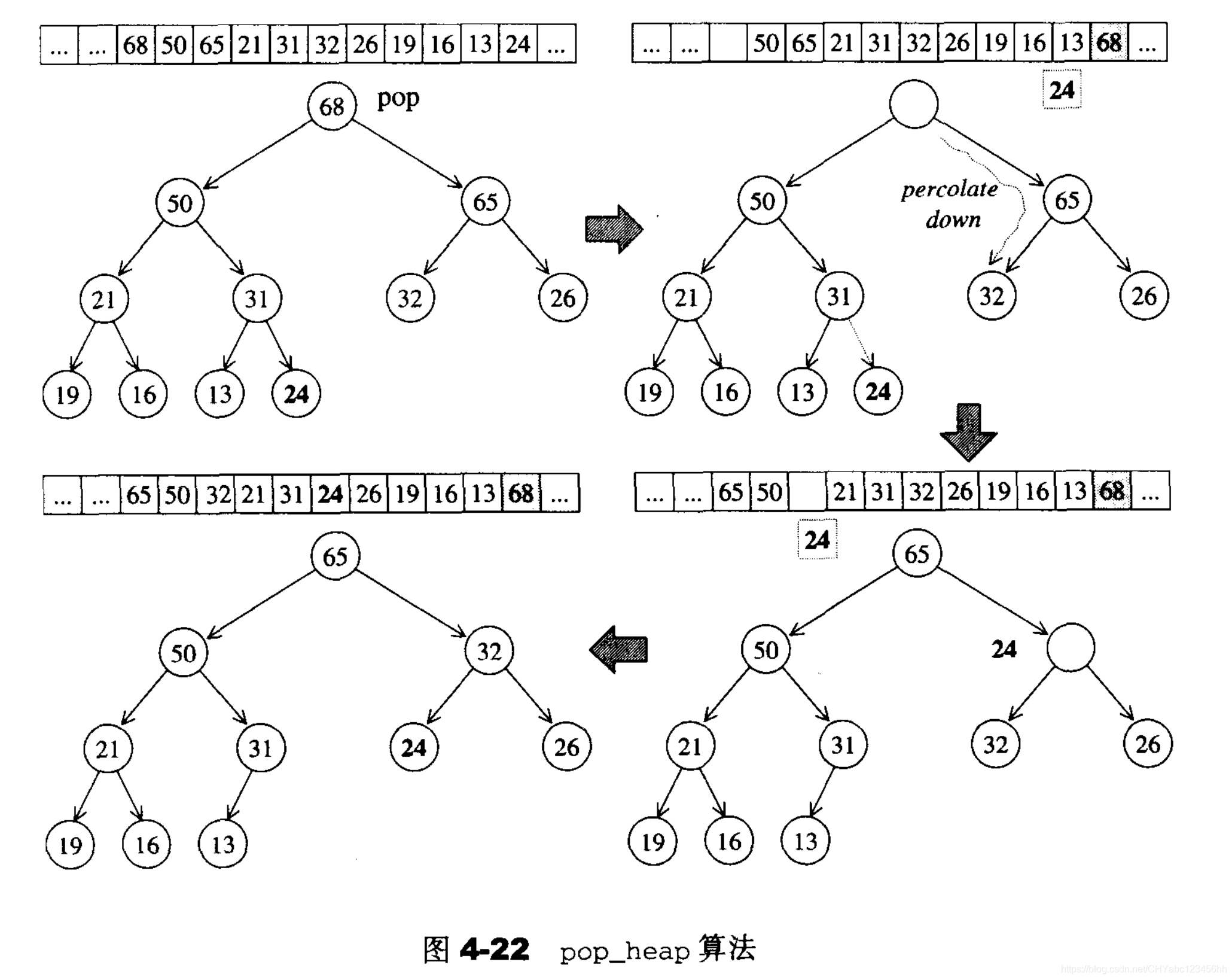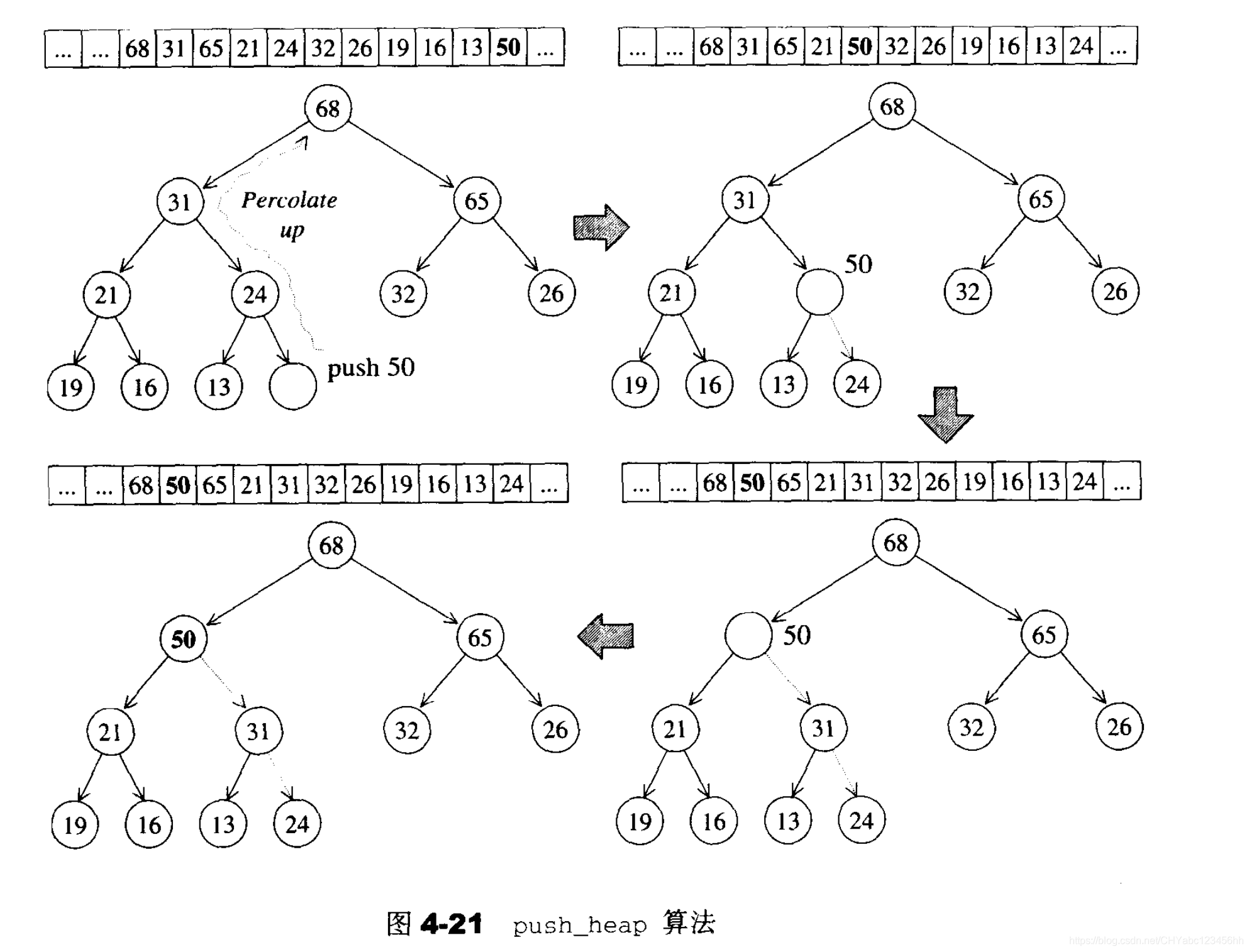 heap一般特指max-heap,即最大的元素位于heap和array的首部