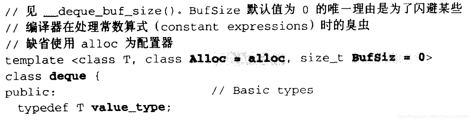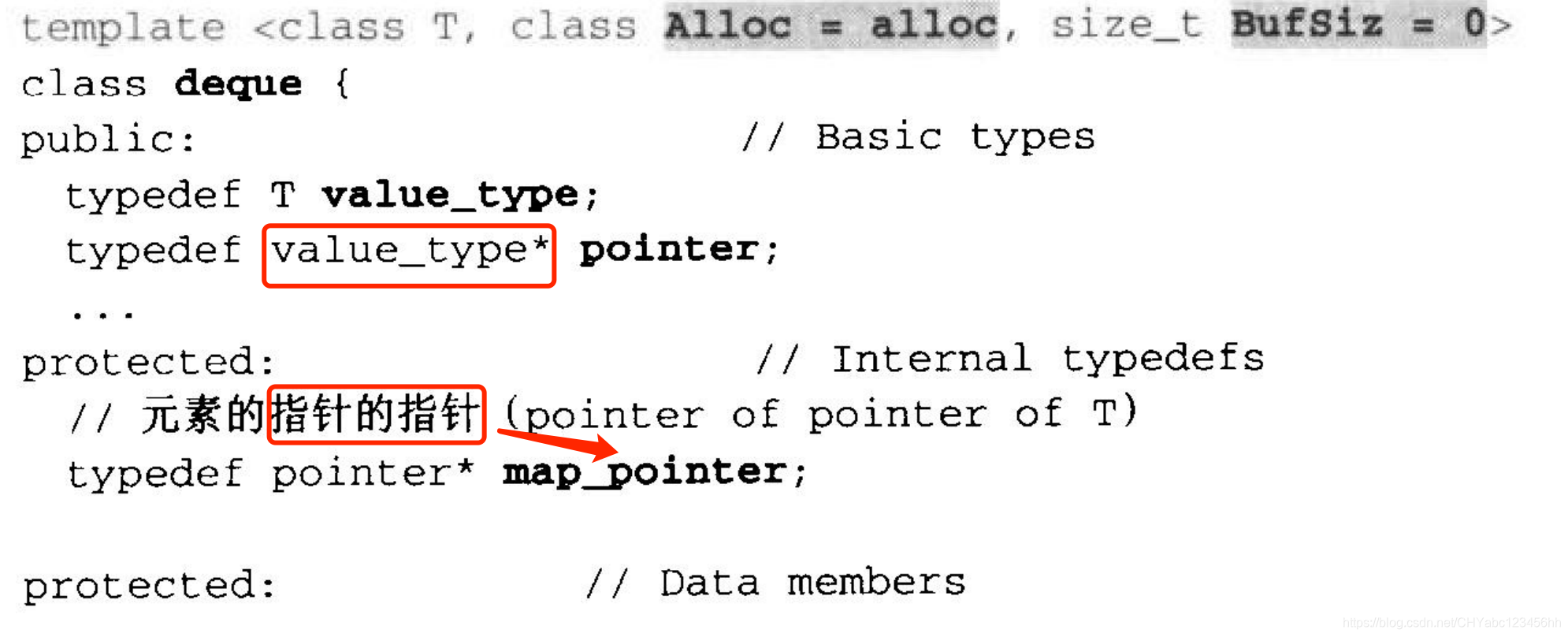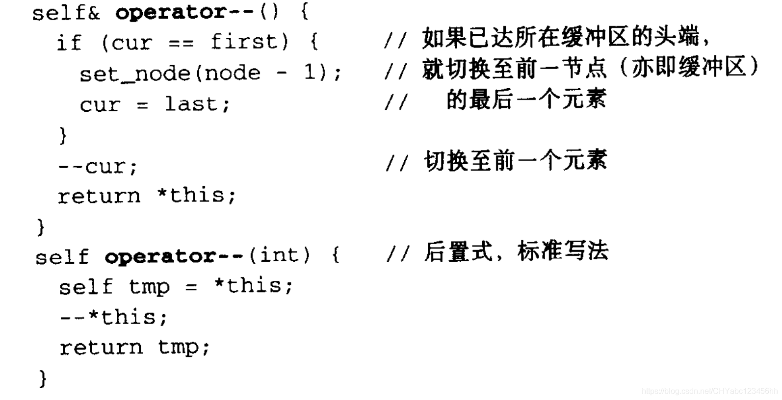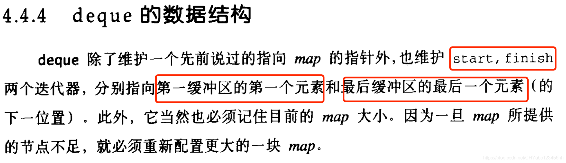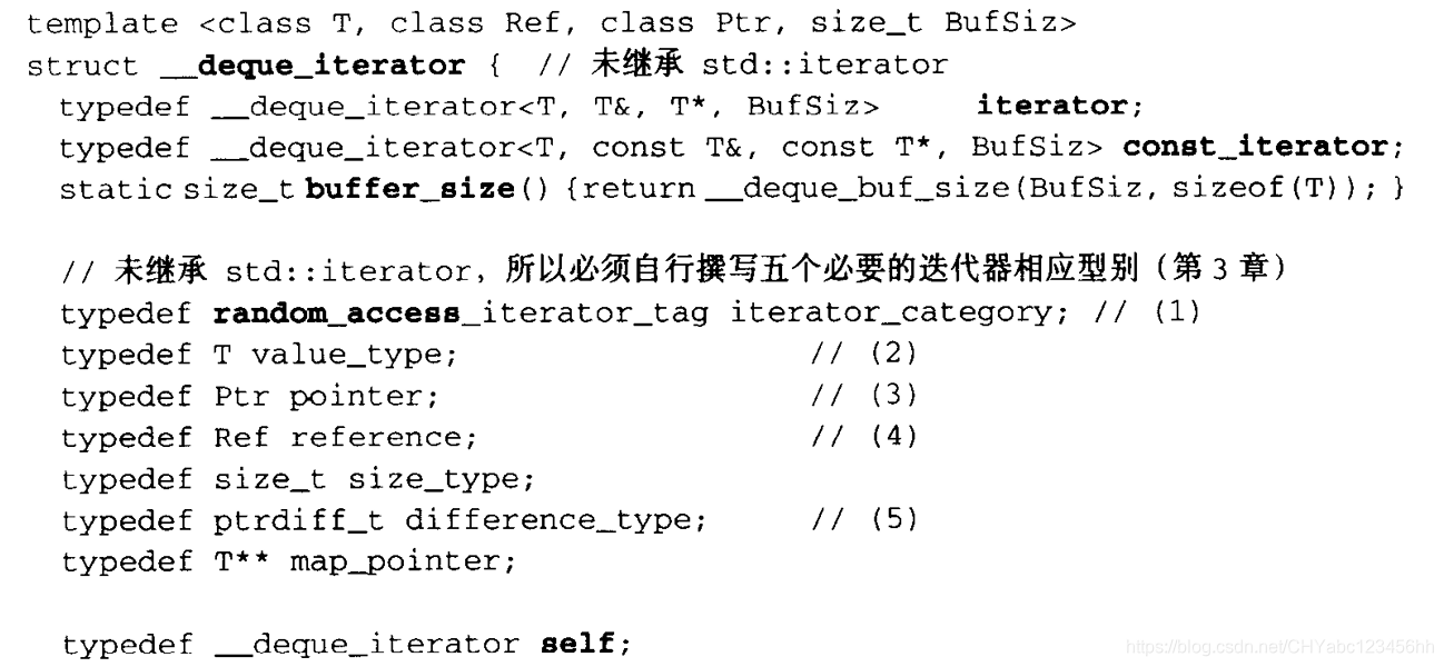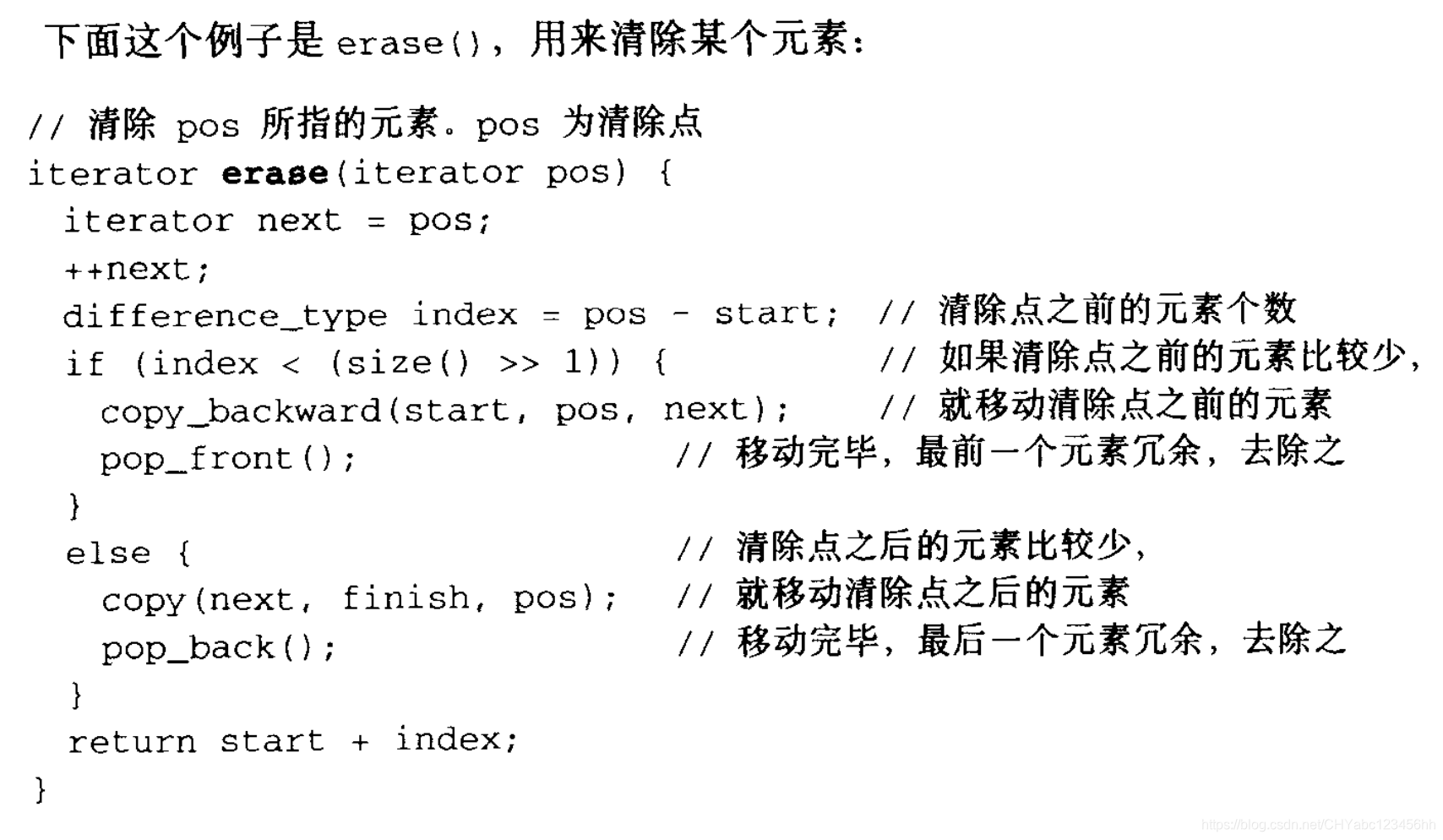 - deque是分段连续空间。维持其“整体连续”假象的任务,落在了迭代器的operator++ 和 operator--两个运算子身上。