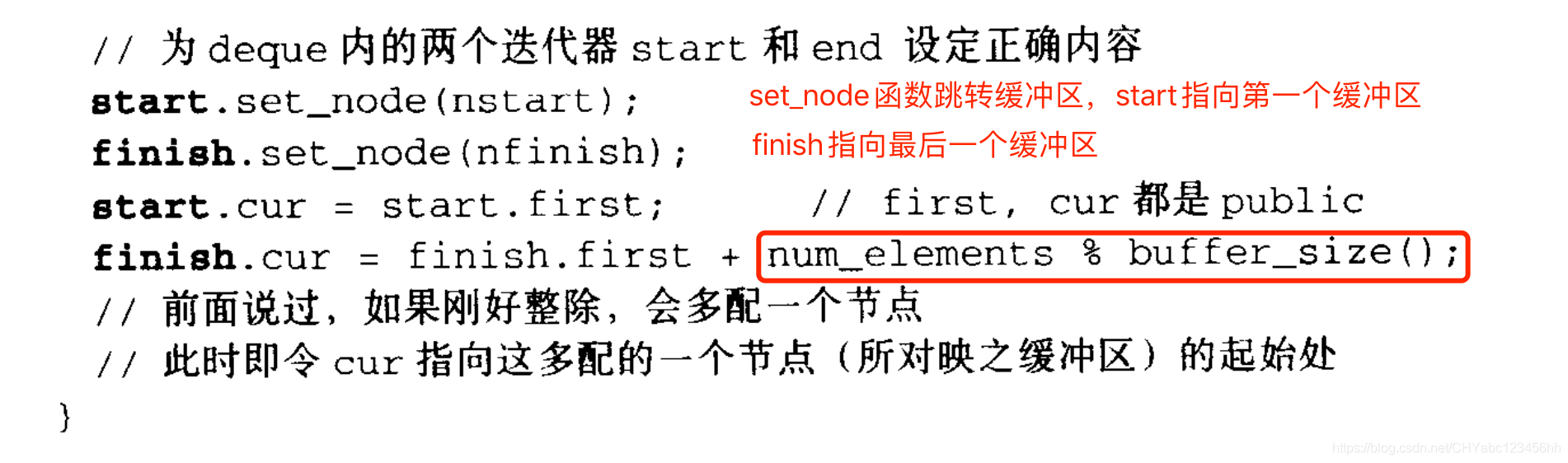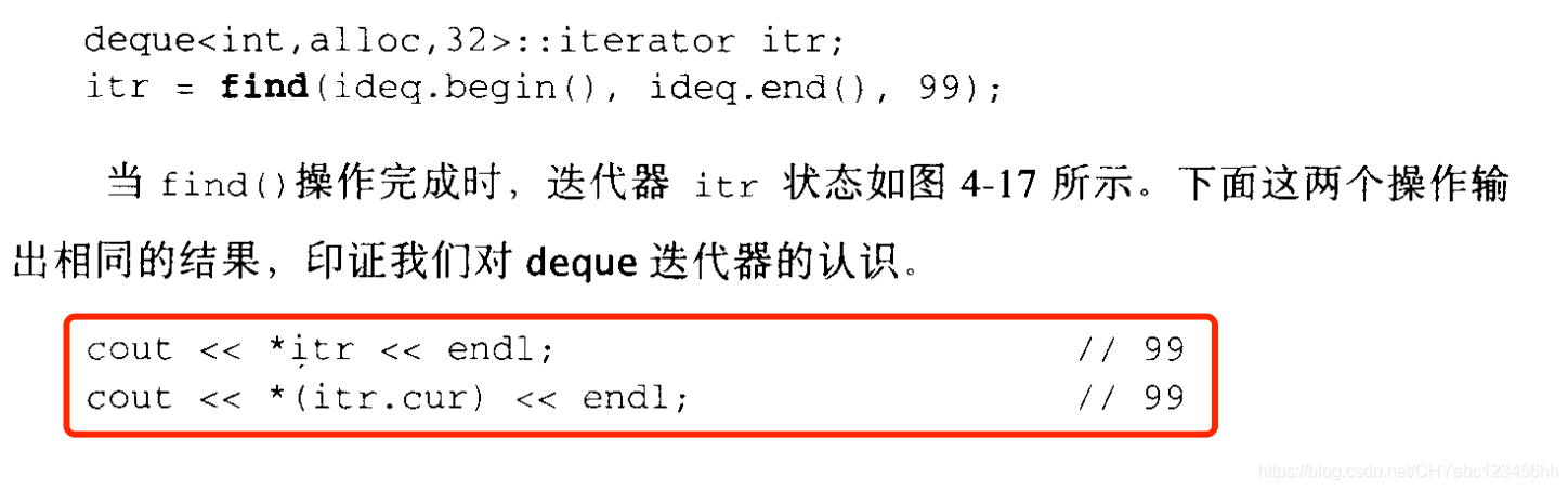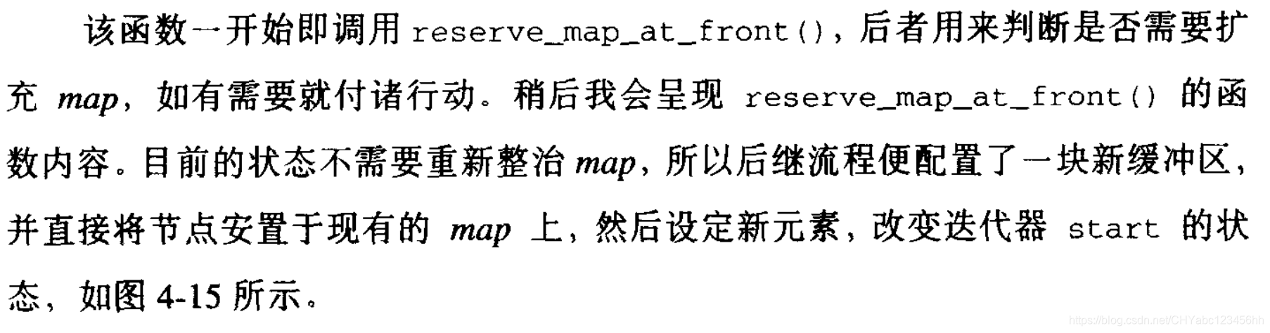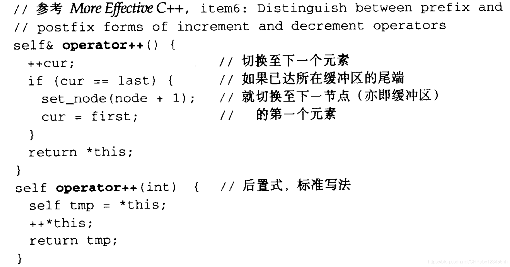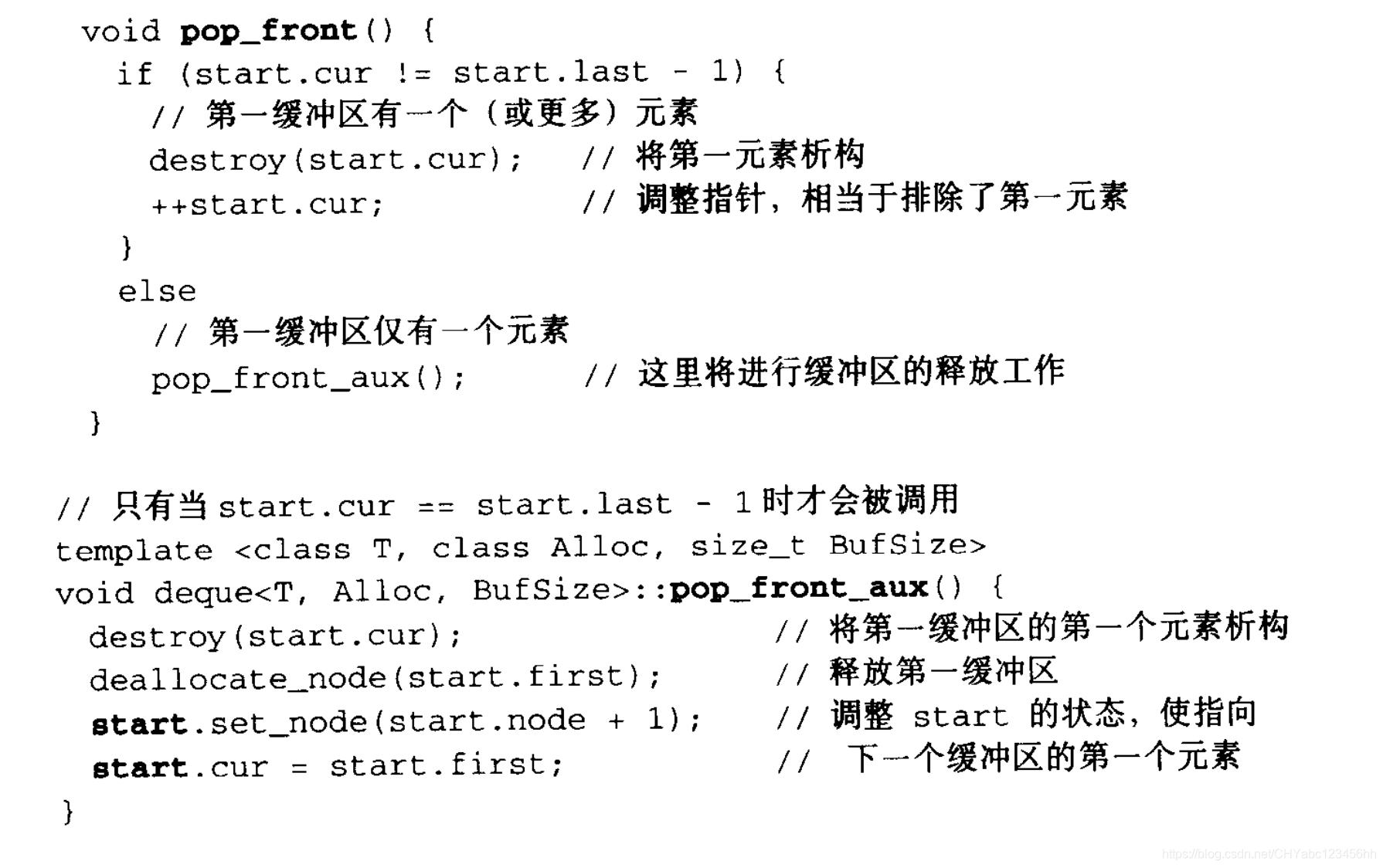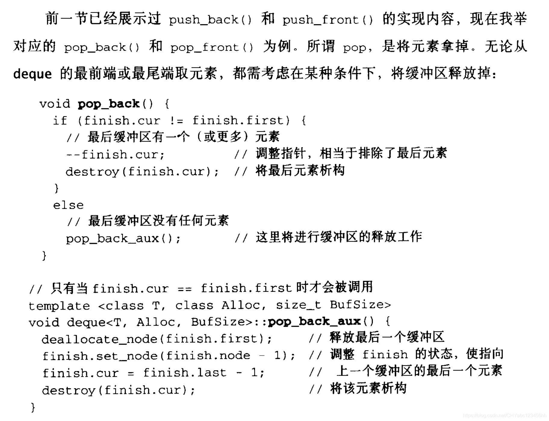 - deque是分段连续空间。维持其“整体连续”假象的任务,落在了迭代器的operator++ 和 operator--两个运算子身上。