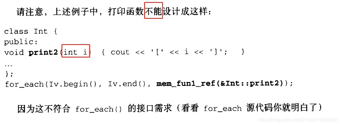 public:explicit Int(int i) : m_i(i){};//这里有个既存的成员函数(稍后希望于STL体系中被复用)void print1() const {std::cout << '[' << m_i << ']';}private:int m_i;