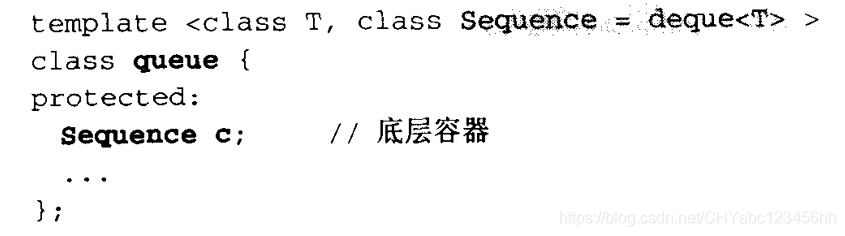 - queue的底层由deque构成。从以下接口可清楚看出queue与deque的关系: