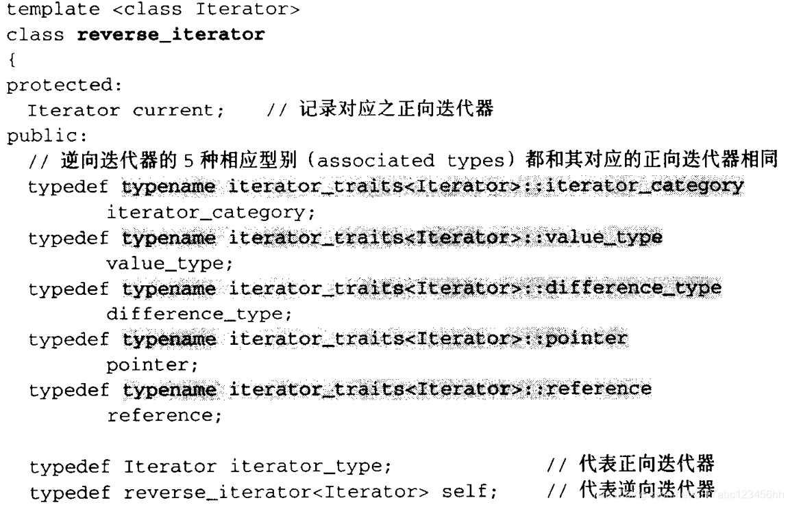 - 这是一个迭代器配接器(iter己tor adapter), 用来将某个迭代器逆反前进方向