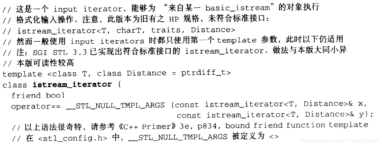 - 乍听之下真神奇。所谓绑定一个i stream object,其实就是在isiream iterator内部维护一个istream member,客户端对于这个迭代器所做的operator++操 作 ,会 被 导 引 调 用 迭 代 器 内 部 所 含 的 那 个 istream member的输入操作(operator») 。这个迭代器是个Input Iterator,不具备operator--o下面的源代码和注释说明了一切。