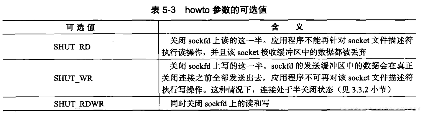 - sockfd参数是待关闭的socketo howto参数决定了 shutdown的行为,它可取表5・ 3中的