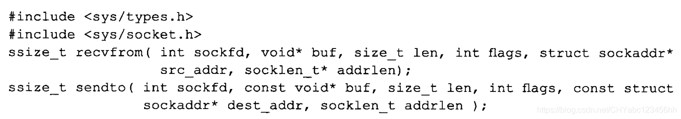 参数指定接收端的socket地址,addrlen参数则指定该地址的长度。 - 这两个系统调用的flags参数以及返回值的含义均与send/recv系统调用的flags参数及返回值相同。