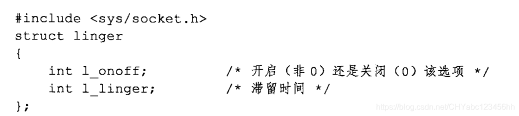 - 如 表 5・5 所 示 ,设 置 (获 取 )SO_LINGER选 项 的 值 时 , 我 们 需 要 给 setsockopt ( getsockopt) 系统调用传递一个linger类型的结构体,其定义如下: