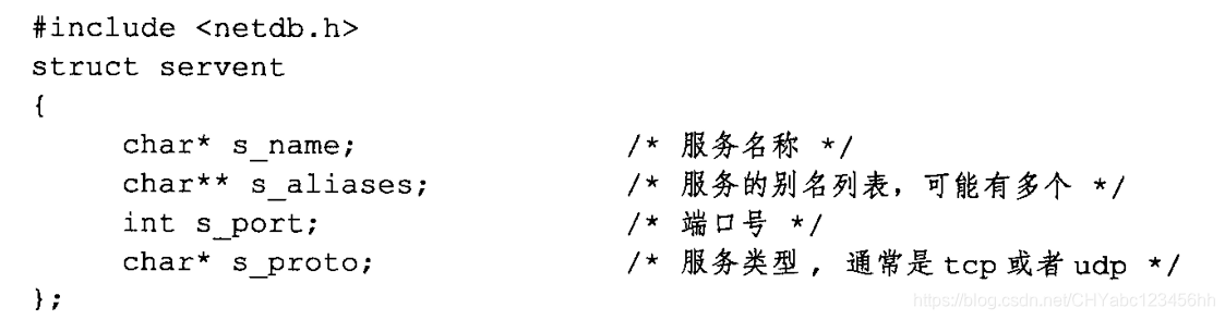 - 这两个函数返回的都是servent结构体类型的指针,结构体servent的定义如下: