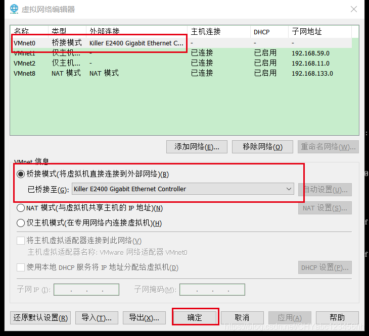 - 桥接模式就是将虚拟网卡映射到物理网卡,相当于虚拟机直接使用物理网卡,可以用来连接目标设备进行开发,这时虚拟机一般无法联网,而物理主机也不能使用此物理网卡来联网;