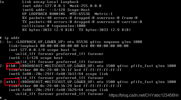 - 使用 ifconfig查看,发现有eth0和eth1 或者使用命令 ip addr也是一样的