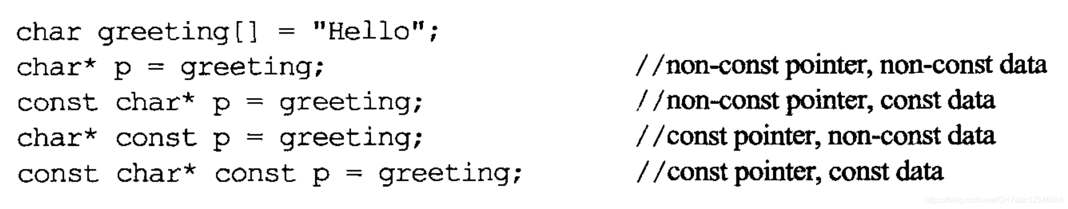 - “int*const p”这种声明形式。很显然,这里的 const 是写在 p 前和 * 号后的,而不是写在“*p”前的,所以它是用来修饰限定 p 的