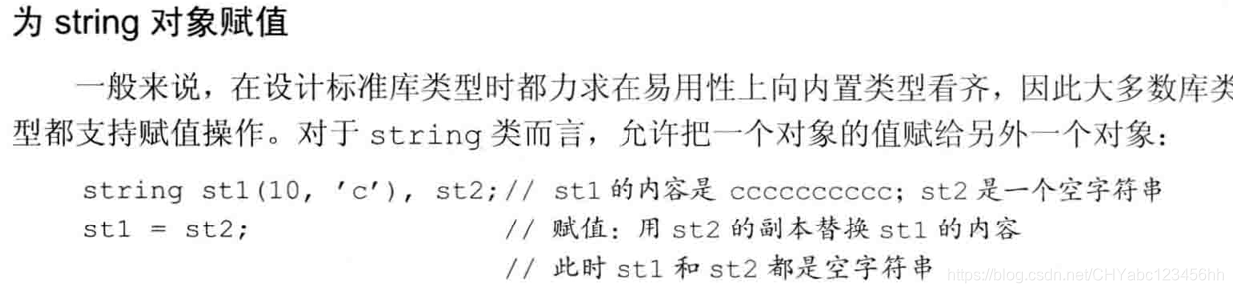 - 由2.2.1节(第39页)的学习可知,C++语言有几种不同的初始化方式,通过string我们可以清楚地看到在这些初始化方式之间到底有什么区别和联系。如果使用等号(=)初始化-个变量,实际上执行的是拷贝初始化(copyinitialization),编译器把等号右侧的初始值拷贝到新创建的对象中去。与之相反,如果不使用等号,则执行的是直接初始化(directinitialization)。