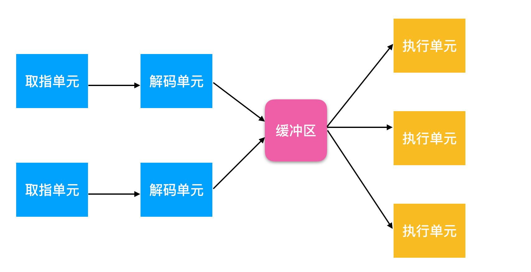- 比流水线更先进的设计是 超标量(superscalar) CPU,下面是超标量CPU的设计