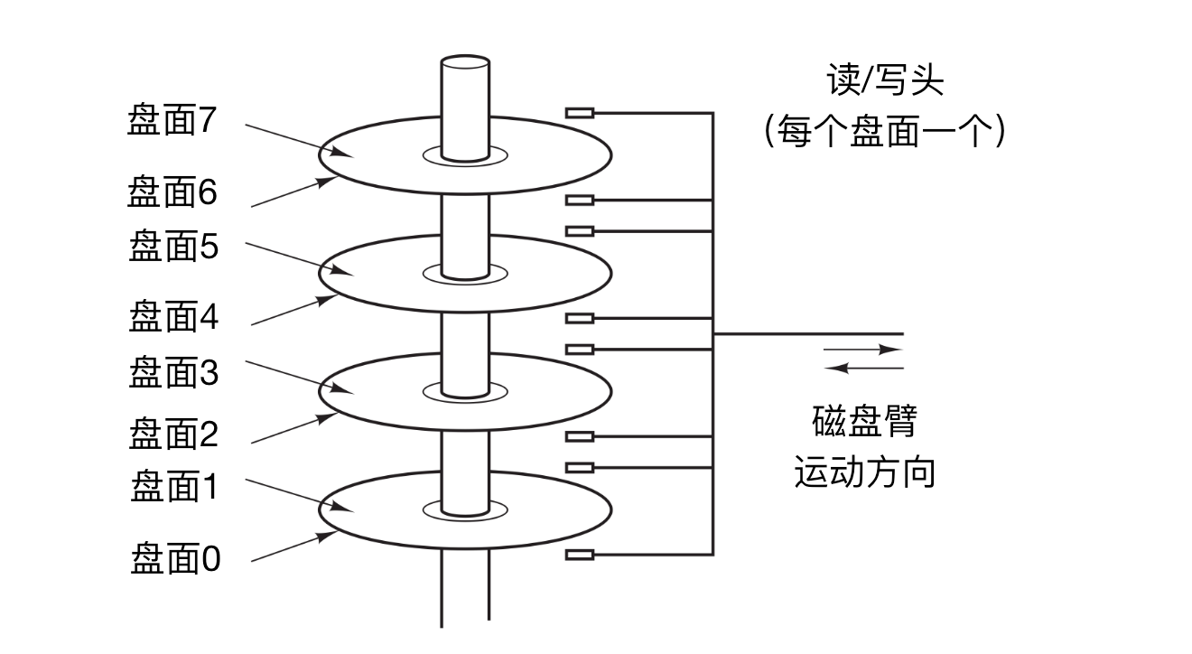 - 每个磁道划分若干扇区,扇区的值是512字节。在现代磁盘中,较外部的柱面比较内部的柱面有更多的扇区。机械臂从一个柱面移动到相邻的柱面大约需要1ms。而随机移到一个柱面的典型时间为5ms至10ms,具体情况以驱动器为准。一旦磁臂到达正确的磁道上,驱动器必须等待所需的扇区旋转到磁头之下,就开始读写,低端硬盘的速率是50MB/S,而高速磁盘的速率是160MB/S。