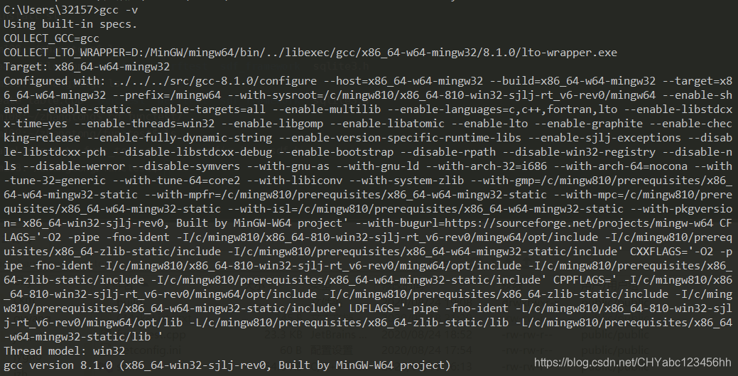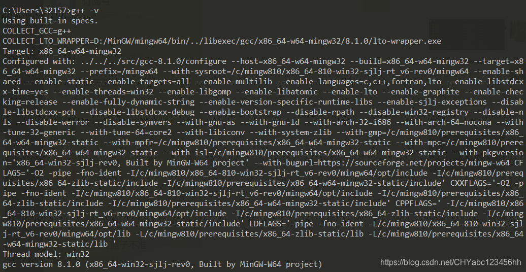 - 进行验证,打开命令窗口输入gcc -v 和 g++ -v进行测试