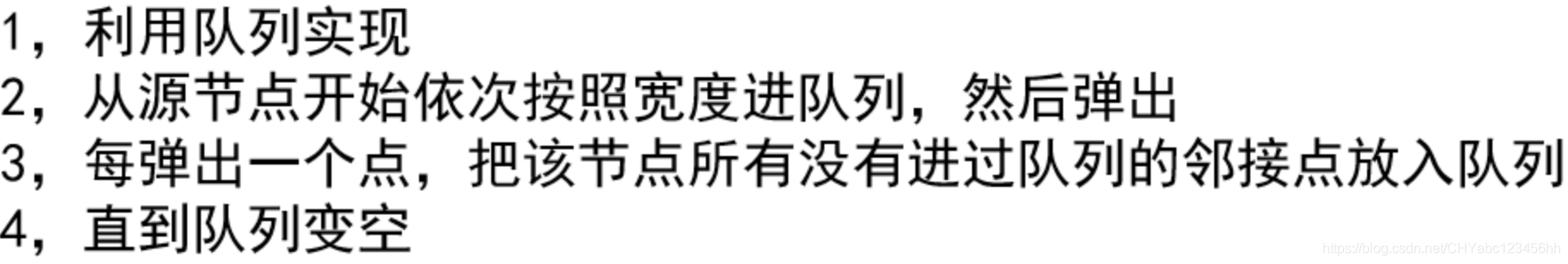 import java.util.Queue;public class Code01_BFS {// 从node出发,进行宽度优先遍历public static void bfs(Node node) {if (node == null) {return;}Queue<Node> queue = new LinkedList<>();HashSet<Node> set = new HashSet<>();//防止数据重复queue.add(node);set.add(node);while (!queue.isEmpty()) {Node cur = queue.poll();System.out.println(cur.value);for (Node next : cur.nexts) {if (!set.contains(next)) {set.add(next);queue.add(next);}}}}}