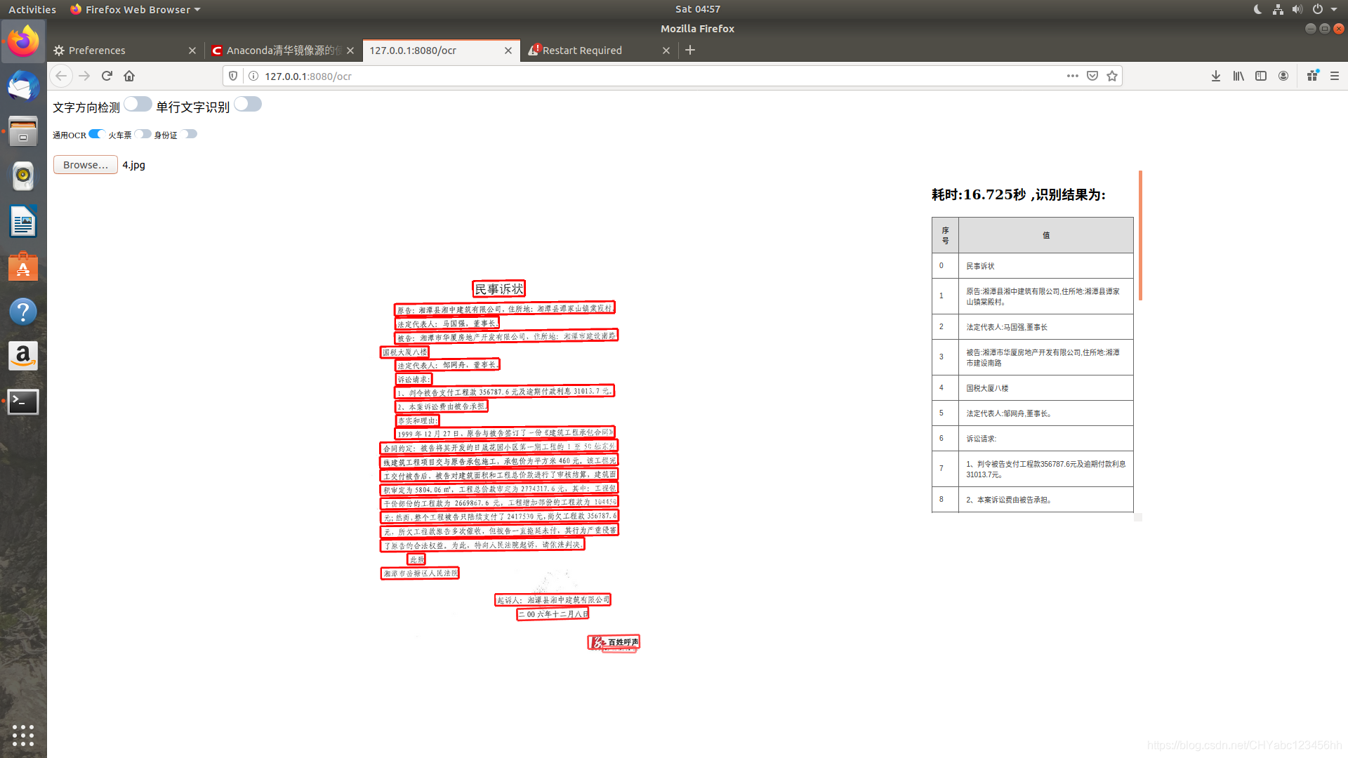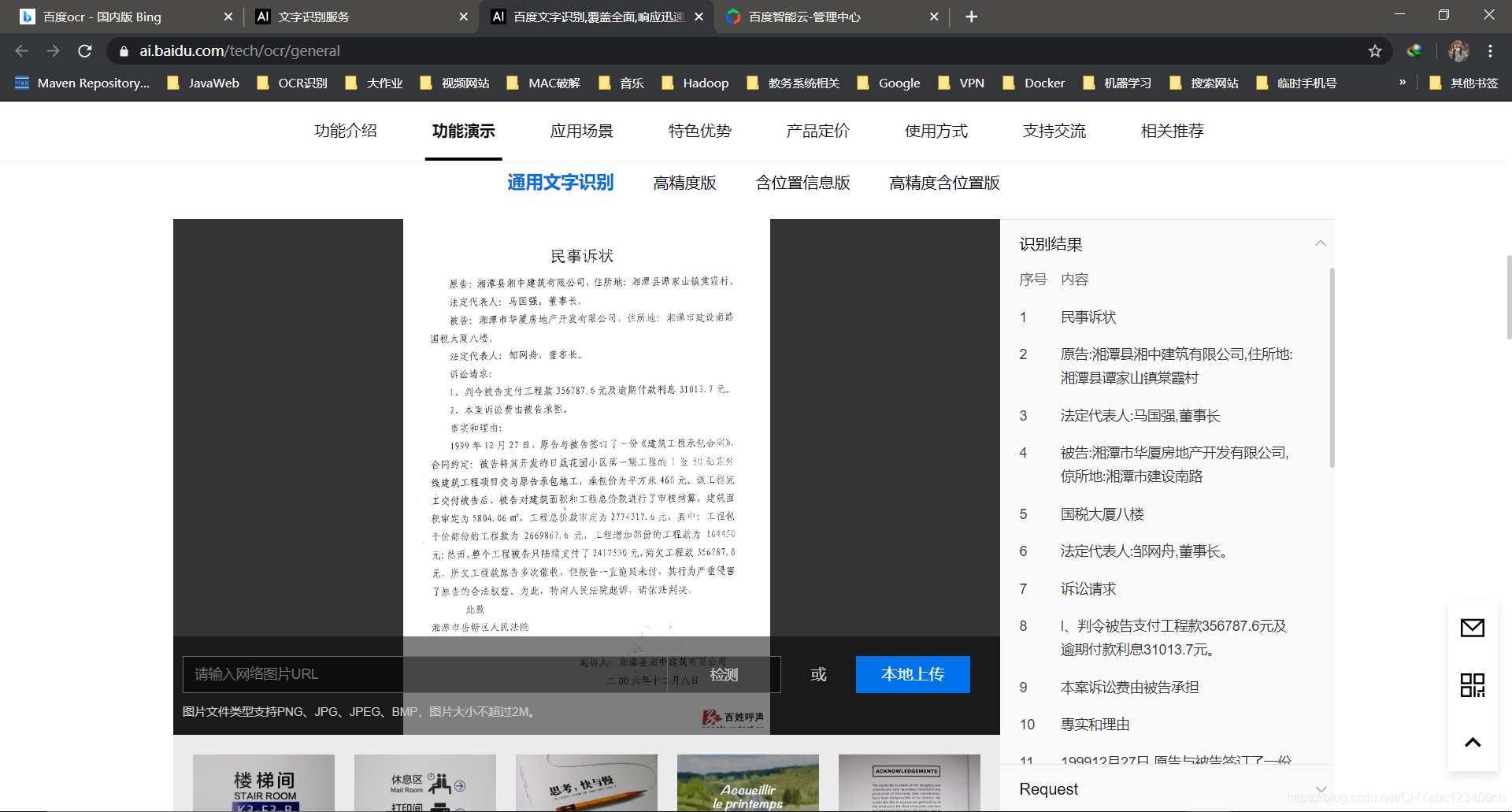 - 在浏览器输入http://127.0.0.1:8080/ocr网址进行识别