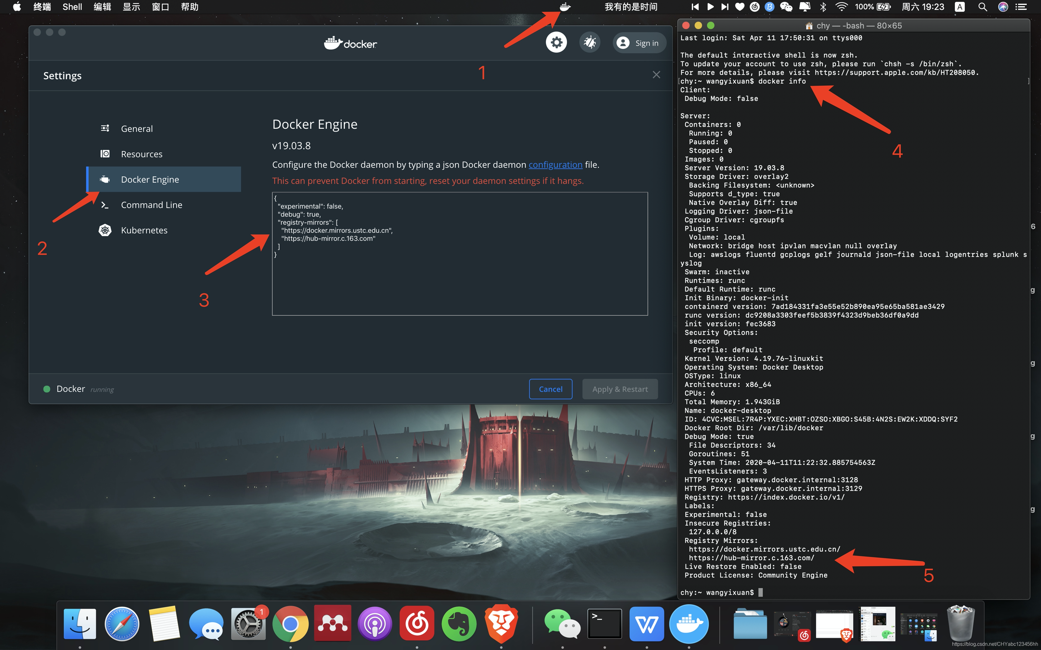 点击Docker图标,选择Preference选项,进行国内代理的问题