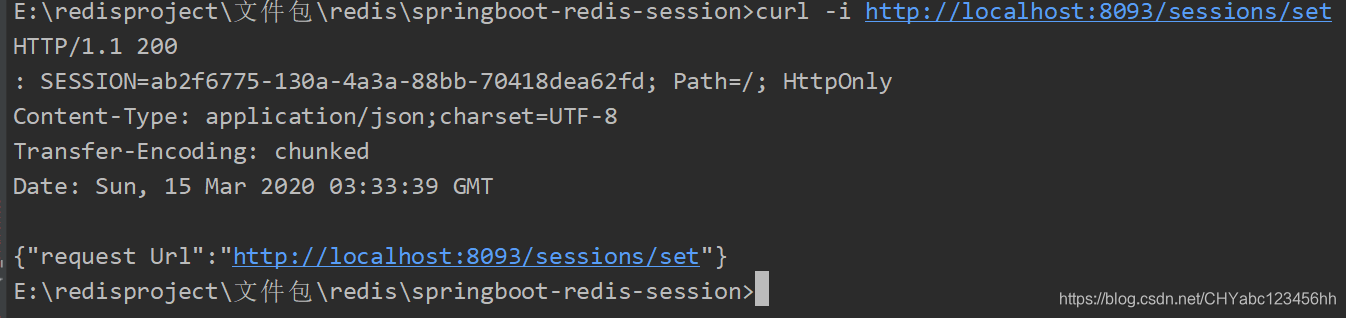 - 使用命令curl -i http://localhost:8093/sessions/set进行链接的设置