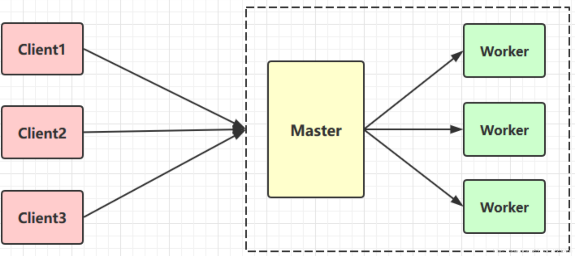 - master接收来自client的任务请求,将任务分发给不同的worker任务节点去执行任务,再将最终的任务结果返回给客户端