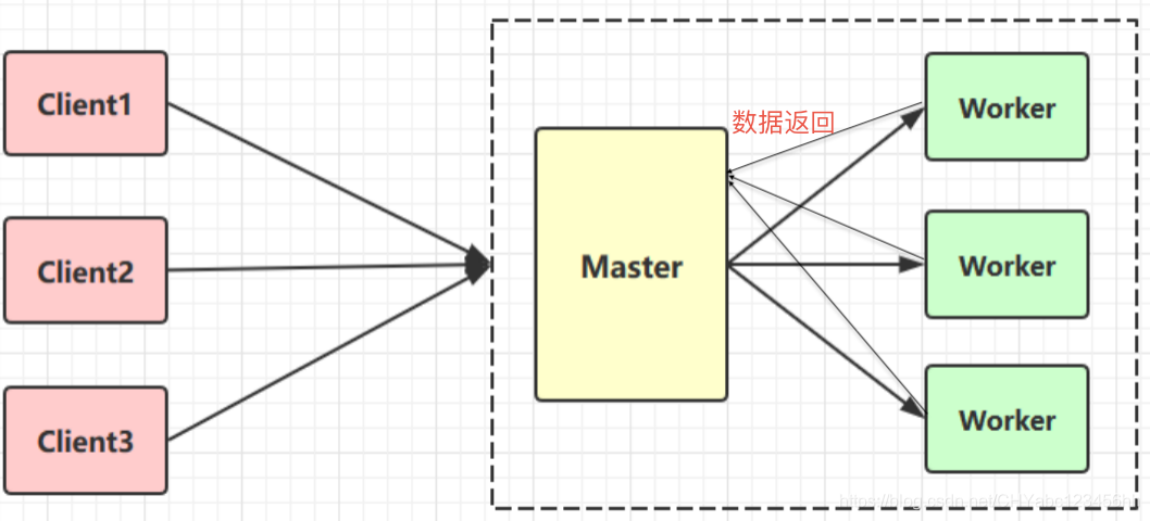 - Master进程负责接收和分配任务,Worker进程负责处理子任务。当各个Worker子进程处理完成之后,会将结果返回给Master,由Master做归纳和总结