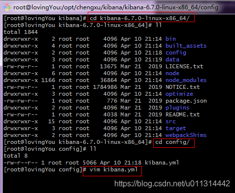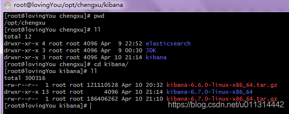 1. 下载好和 elasticsearch 同版本的 kibana 压缩包,放到相应目录下,并解压 :
