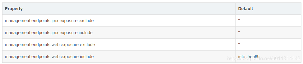 另外可以通过management.endpoints.enabled-by-default来修改全局端口默认配置,以下示例启用info端点并禁用所有其他端点: