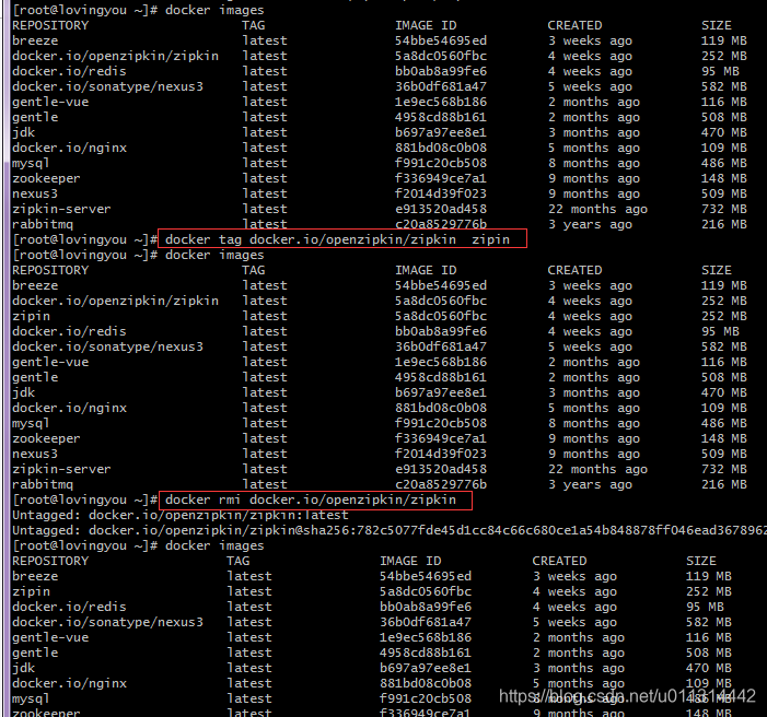 docker tag docker.io/openzipkin/zipkin zipkin# 删除无用的镜像docker.io/openzipkin/zipkin