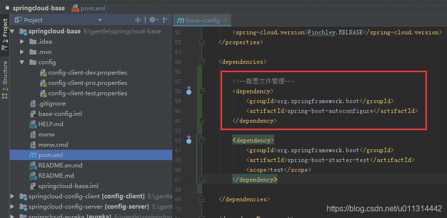 读取的是 springcloud-base工程中新增的 config 文件夹下的配置文件信息。